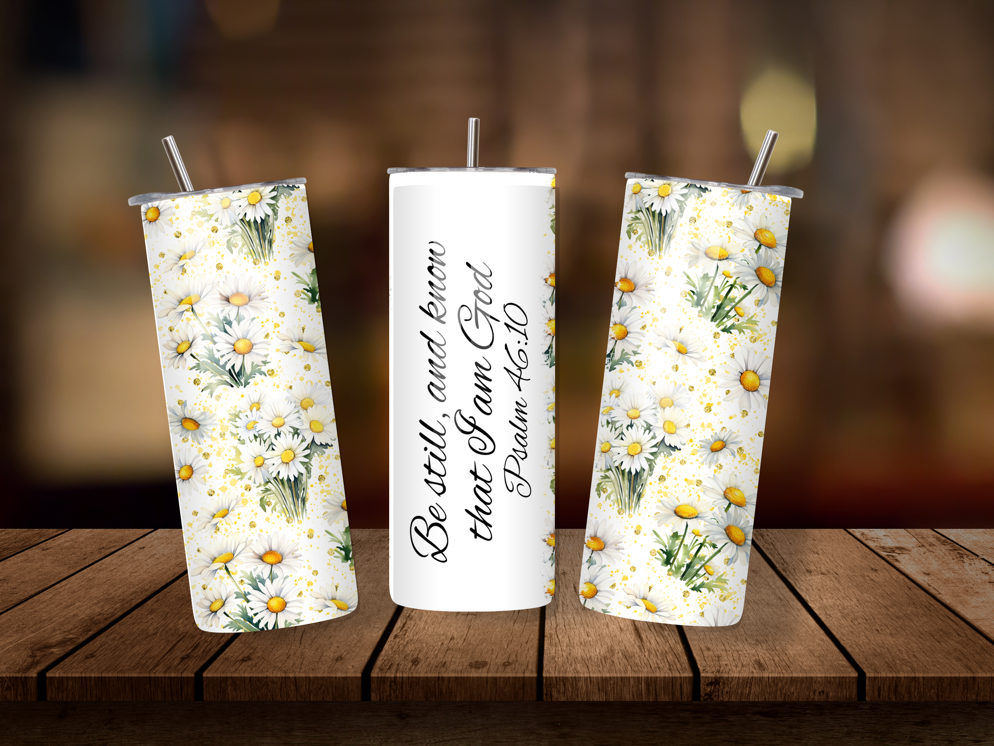 20oz Thermal Stainless Steel Tumbler & Straw, Be Still & Know That I Am God Psalm 46:10
