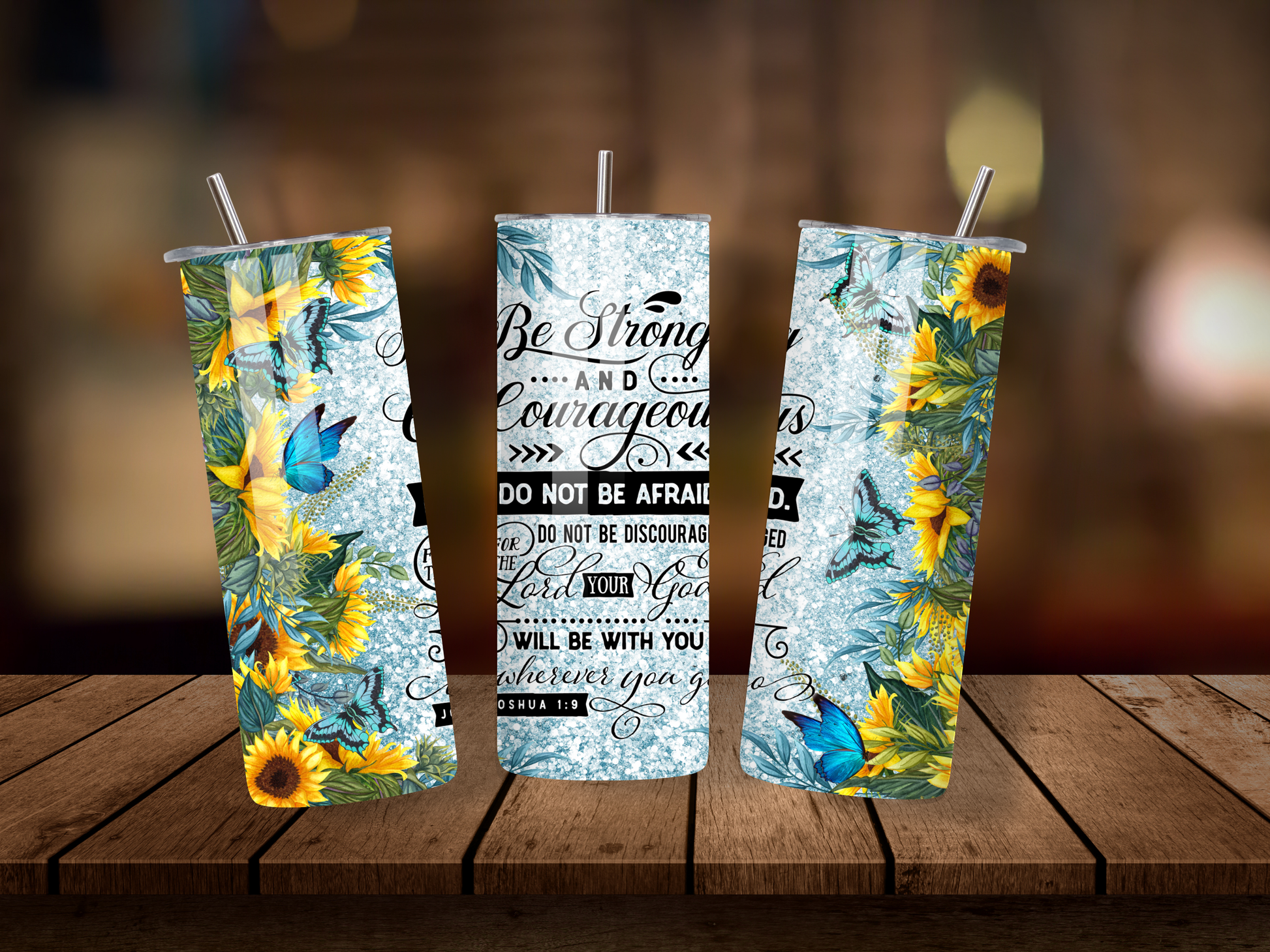 20oz Thermal Stainless Steel Tumbler & Straw, Be Strong & Courageous Joshua 1:9