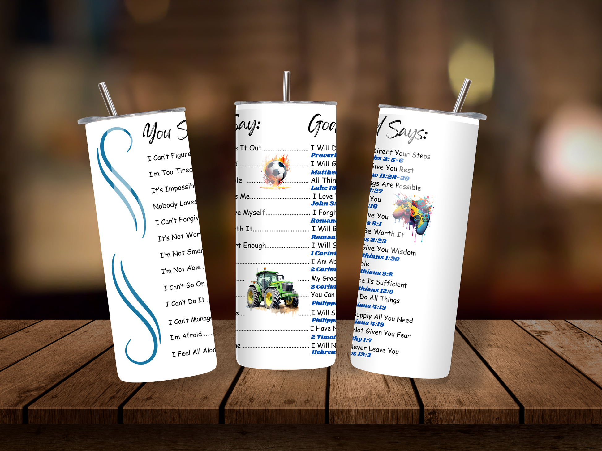 20oz Thermal Stainless Steel Tumbler & Straw, Boys: You Say God Says