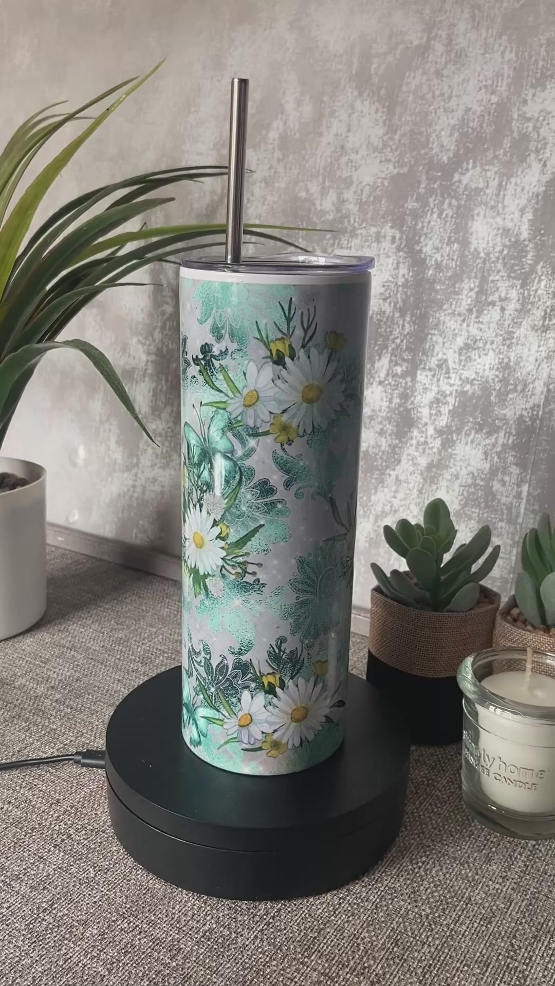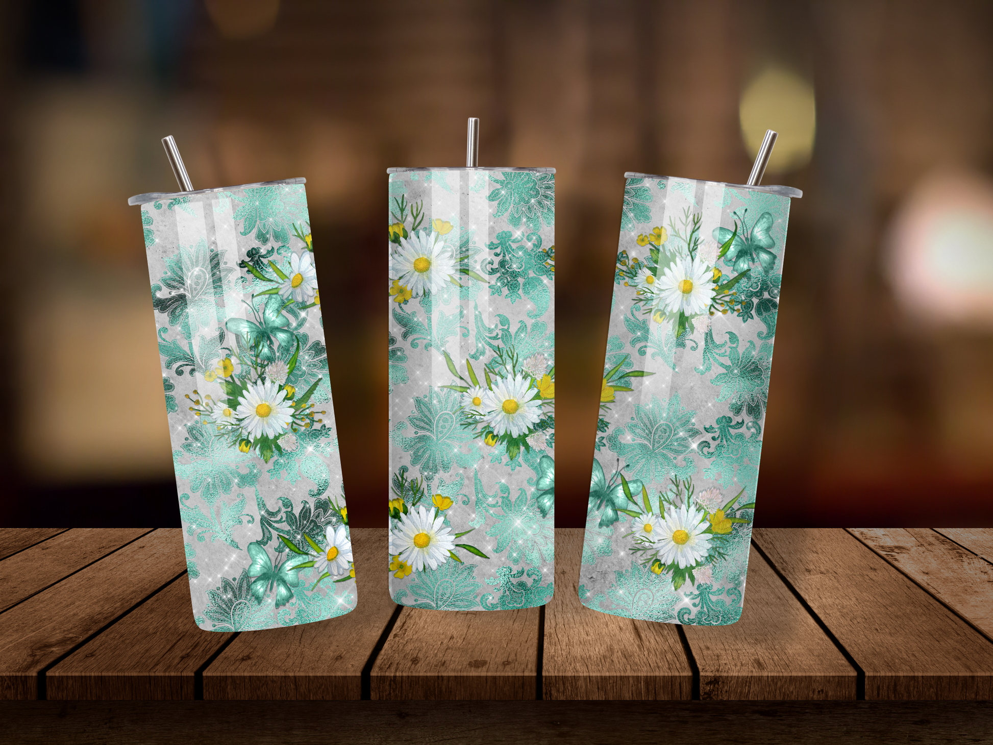 20oz Thermal Stainless Steel Tumbler & Straw, Green Daisy
