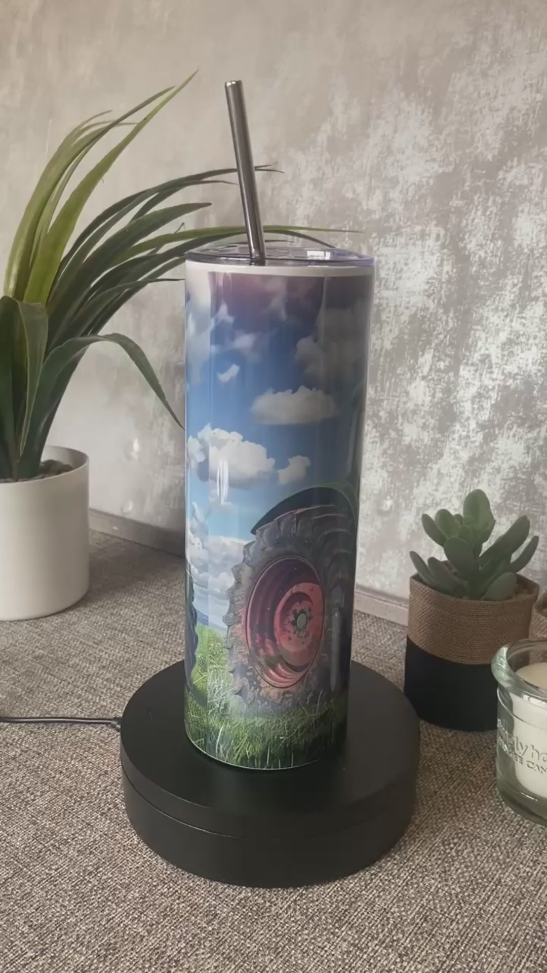 20oz Thermal Stainless Steel Tumbler & Straw, Green Tractor