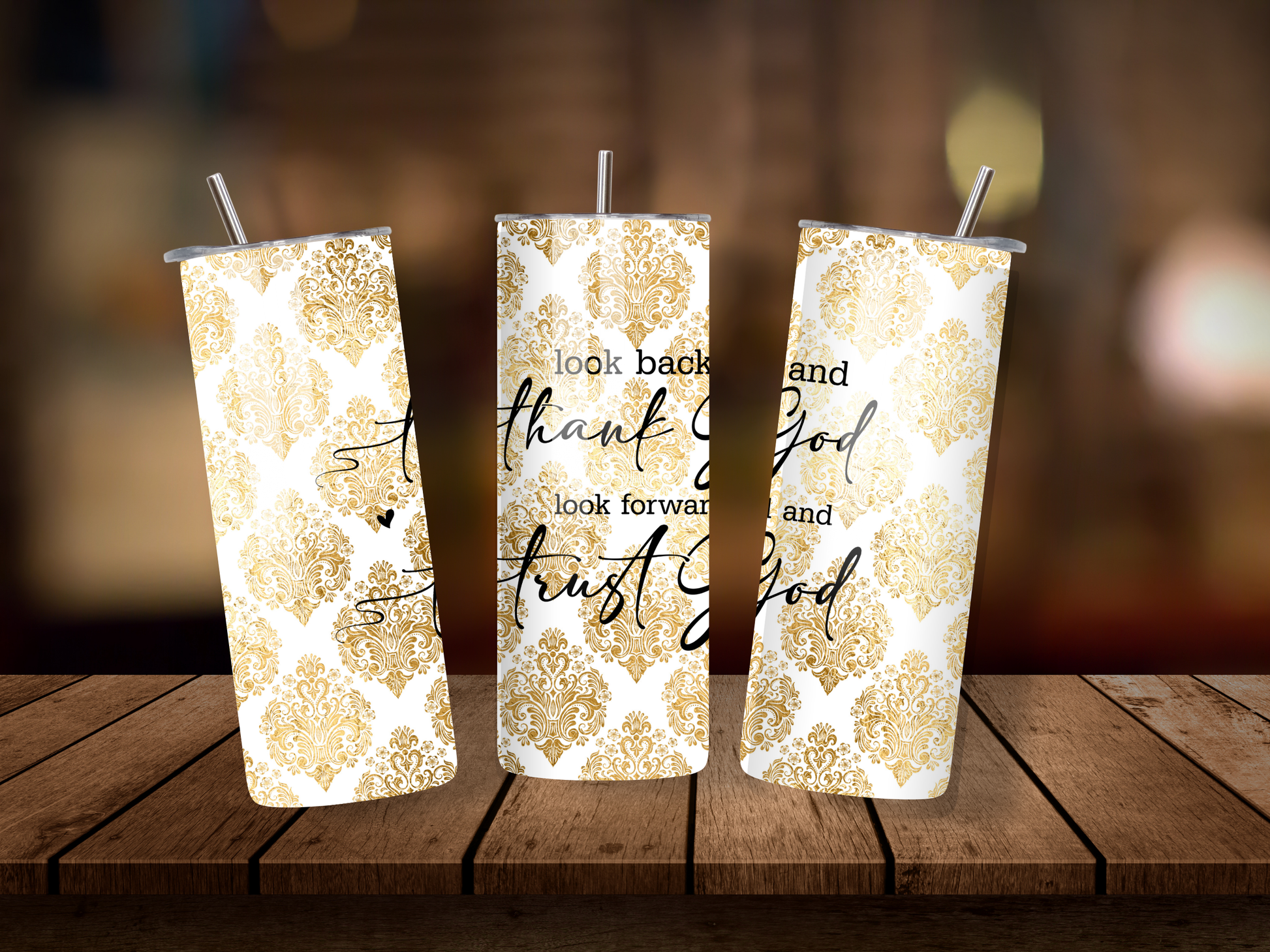 20oz Thermal Stainless Steel Tumbler & Straw, Look Back &Thank God Look Forward & Trust God