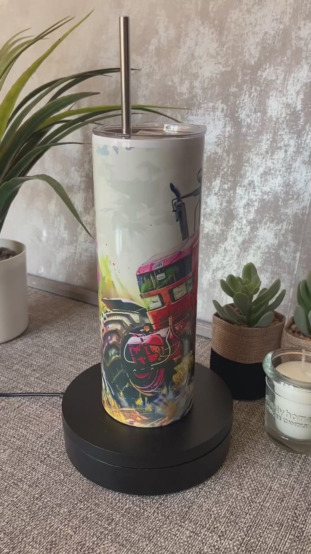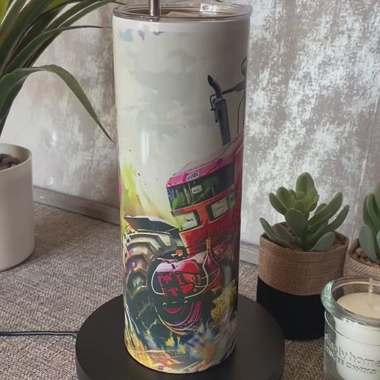 20oz Thermal Stainless Steel Tumbler & Straw, Red Tractor