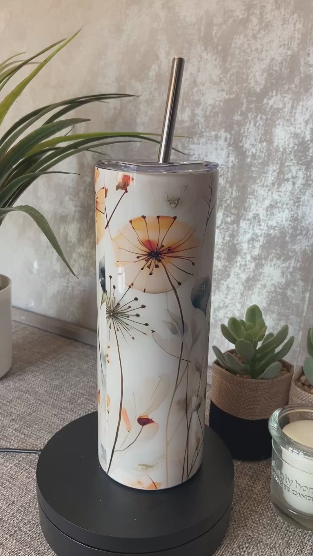 20oz Thermal Stainless Steel Tumbler & Straw, Rustic Floral