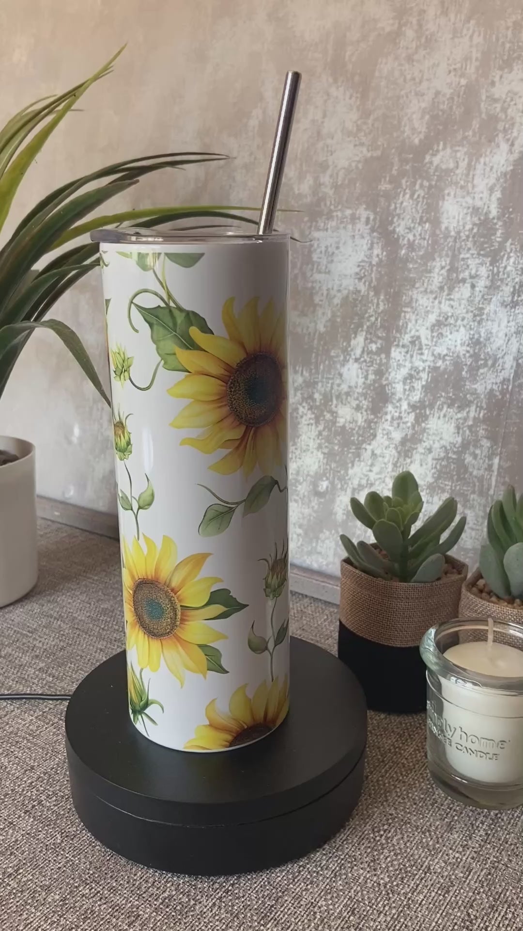 20oz Thermal Stainless Steel Tumbler & Straw, Sunflowers