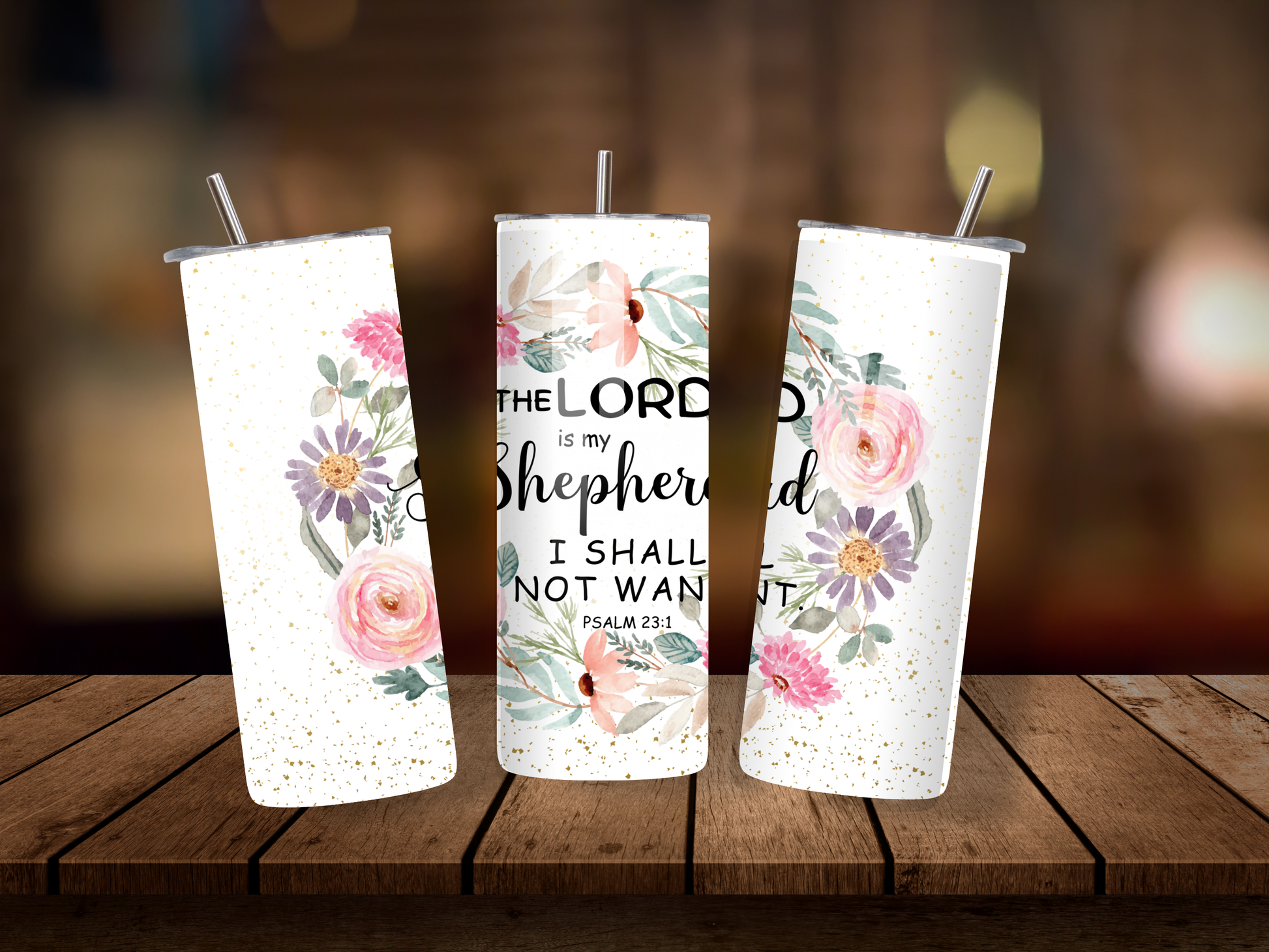 20oz Thermal Stainless Steel Tumbler & Straw, The Lord Is My Shepherd Psalm 23:1