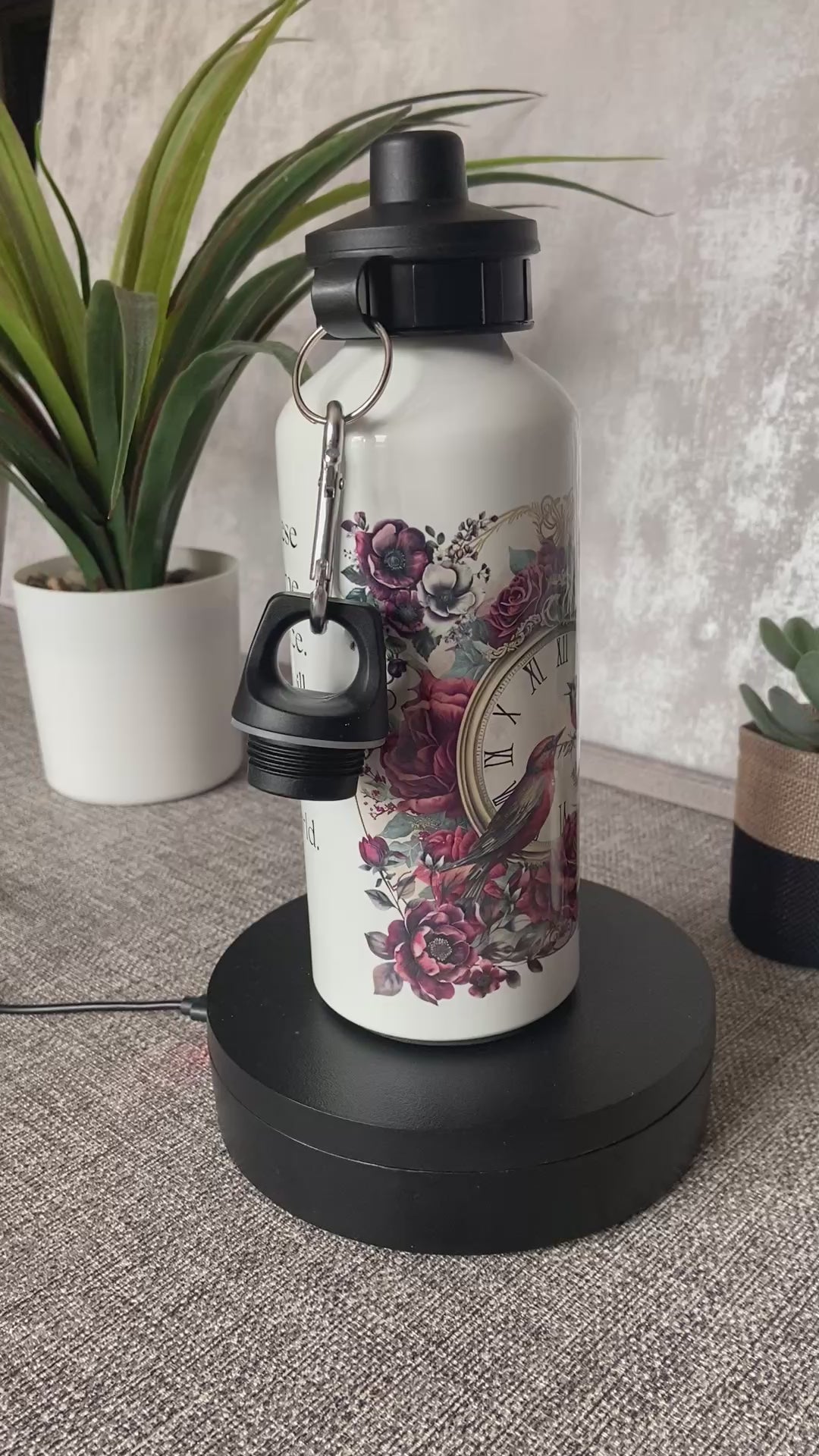 600ml capacity, this bottle comes with two lid options – a sports cap for easy sipping and a loop carabiner clip for convenient carrying on the go. The glossy white finish enhances bold and vibrant designs, while the dishwasher-safe construction ensures long-lasting durability.