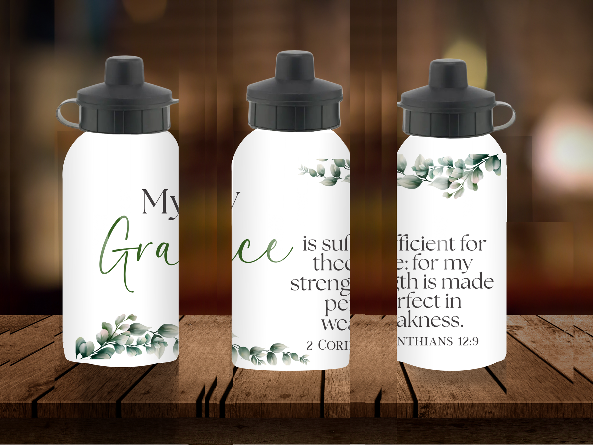 600ml Aluminium Water Bottle - My Grace Is Enough 2 Corinthians 12:9