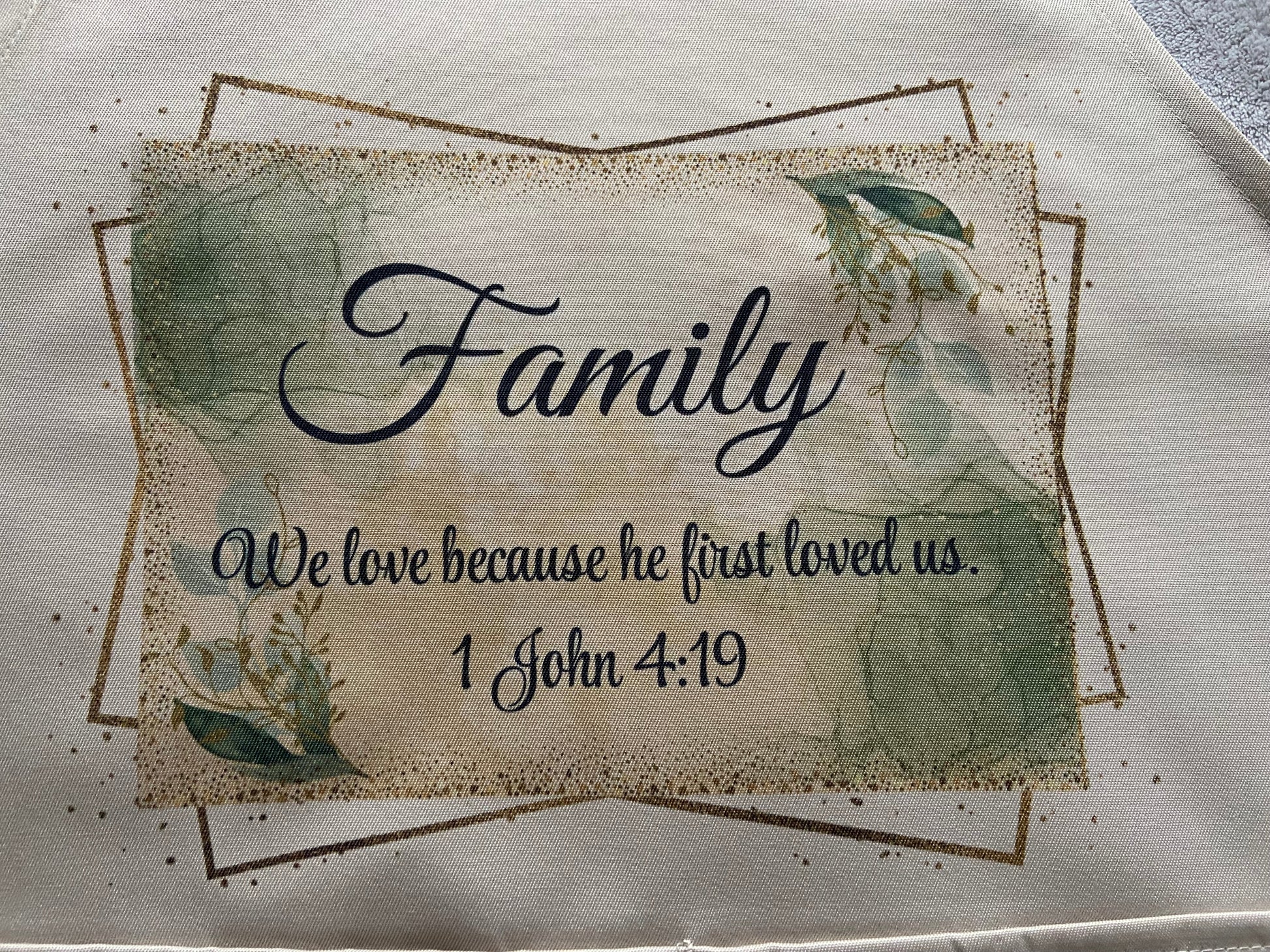 Adult Apron - Family, We Love because He First Loved Us 1 John 4:19