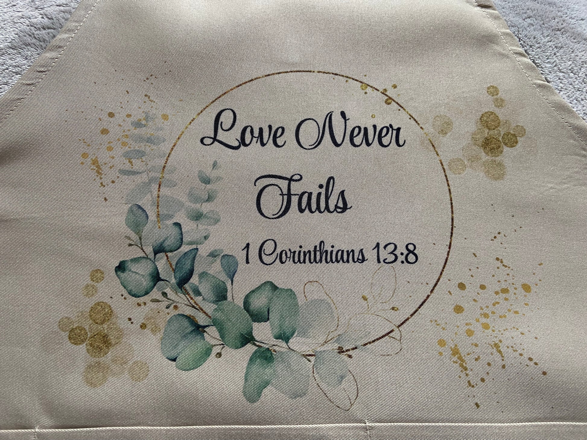 Adult Apron - Love Never Fails 1 Corinthians 13:8
