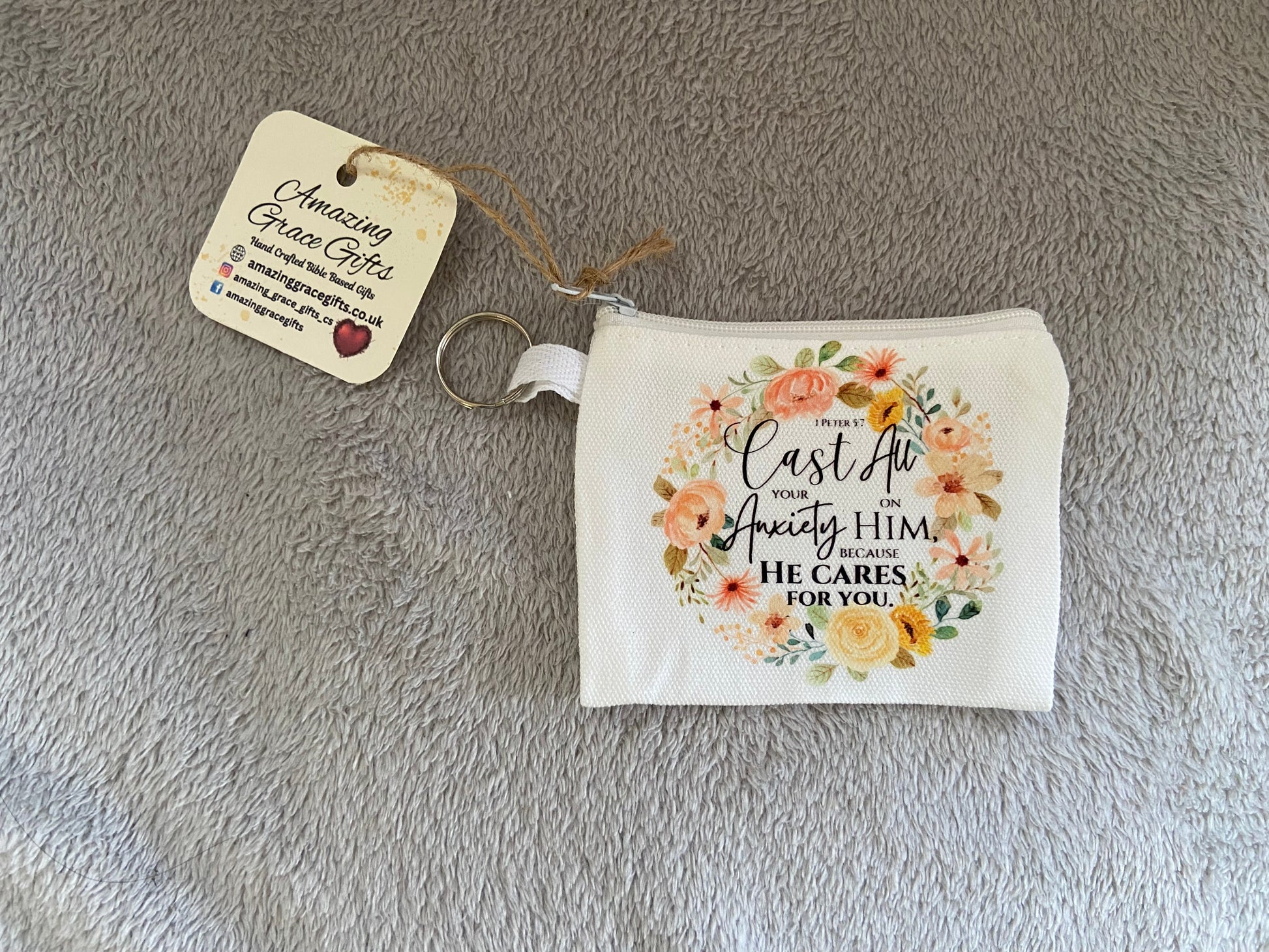 Canvas Keychain Coin Pouch - Cast All Your Anxiety On Him 1 Peter 5:7