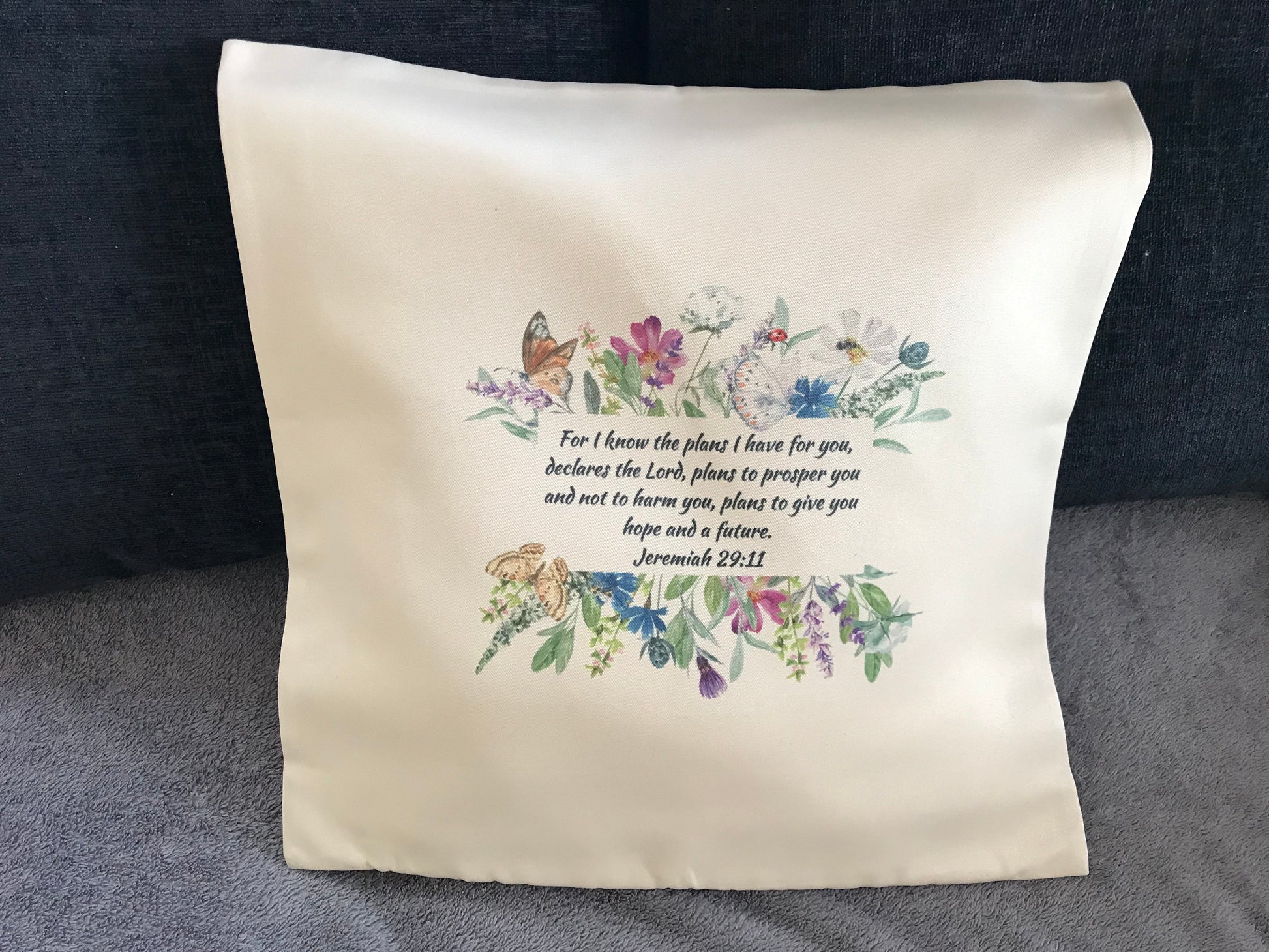 Cushion Cover 45x45cm - For I Know The Plans I Have For You Jeremiah 29:11 Wildflowers