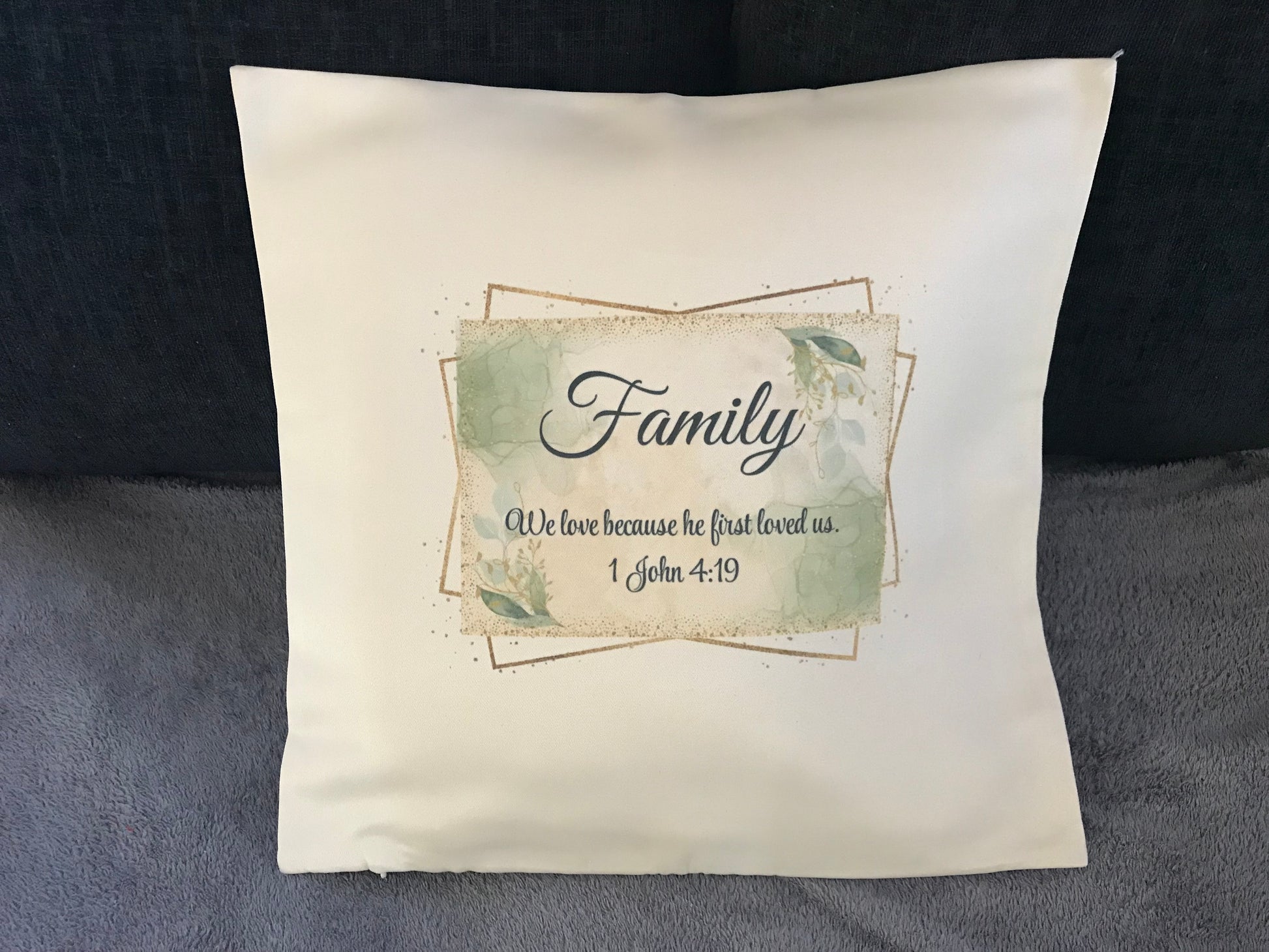 Cushion Cover 45x45cm We love because he first loved us. 1 John 4:19 Family