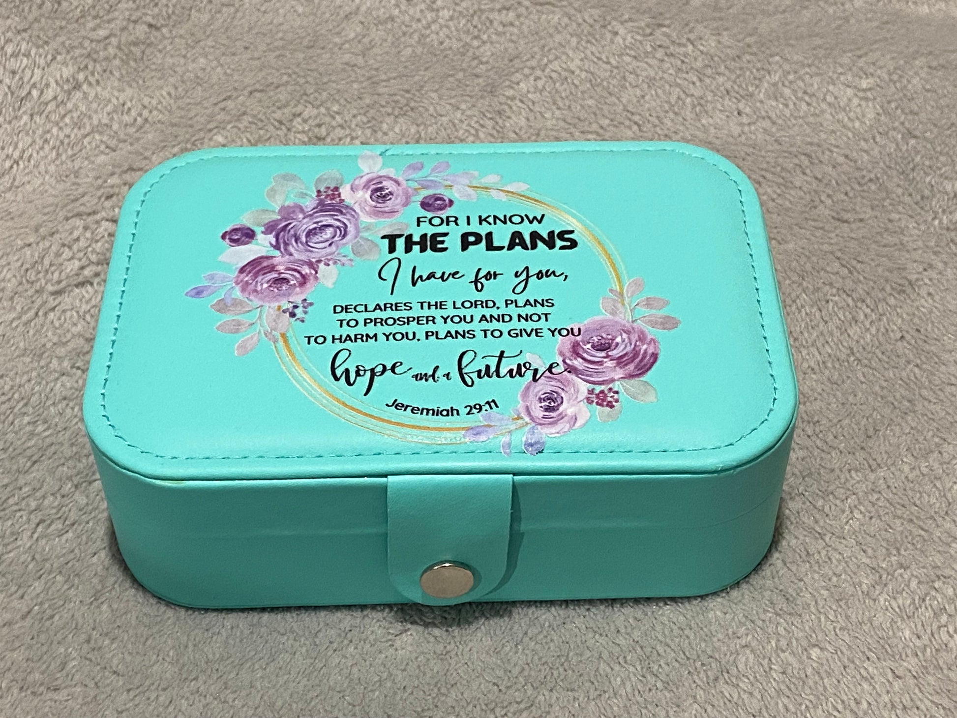 Cyan Large Travel Jewellery Box - For I Know The Plans I Have For You Jeremiah 29:11