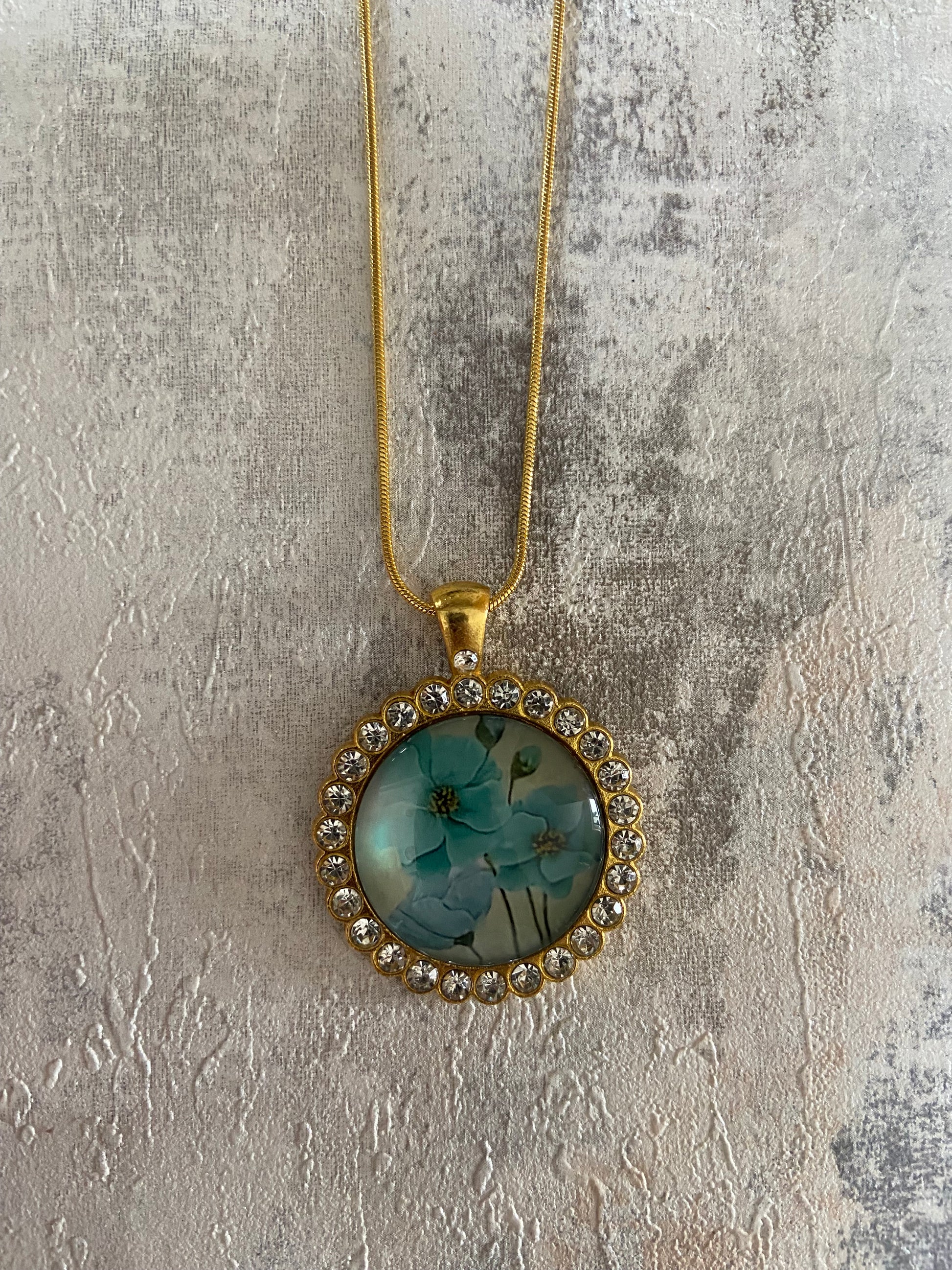 Dazzling & beautiful large gold blue floral pendant 3x3cm Pendant (60cm chain); 3 Variations