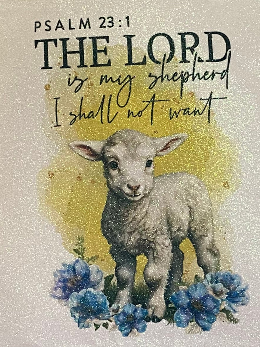 Flat Large White Glitter Tote Bag - The Lord Is My Shepherd I Shall Not Want Psalm 23:1