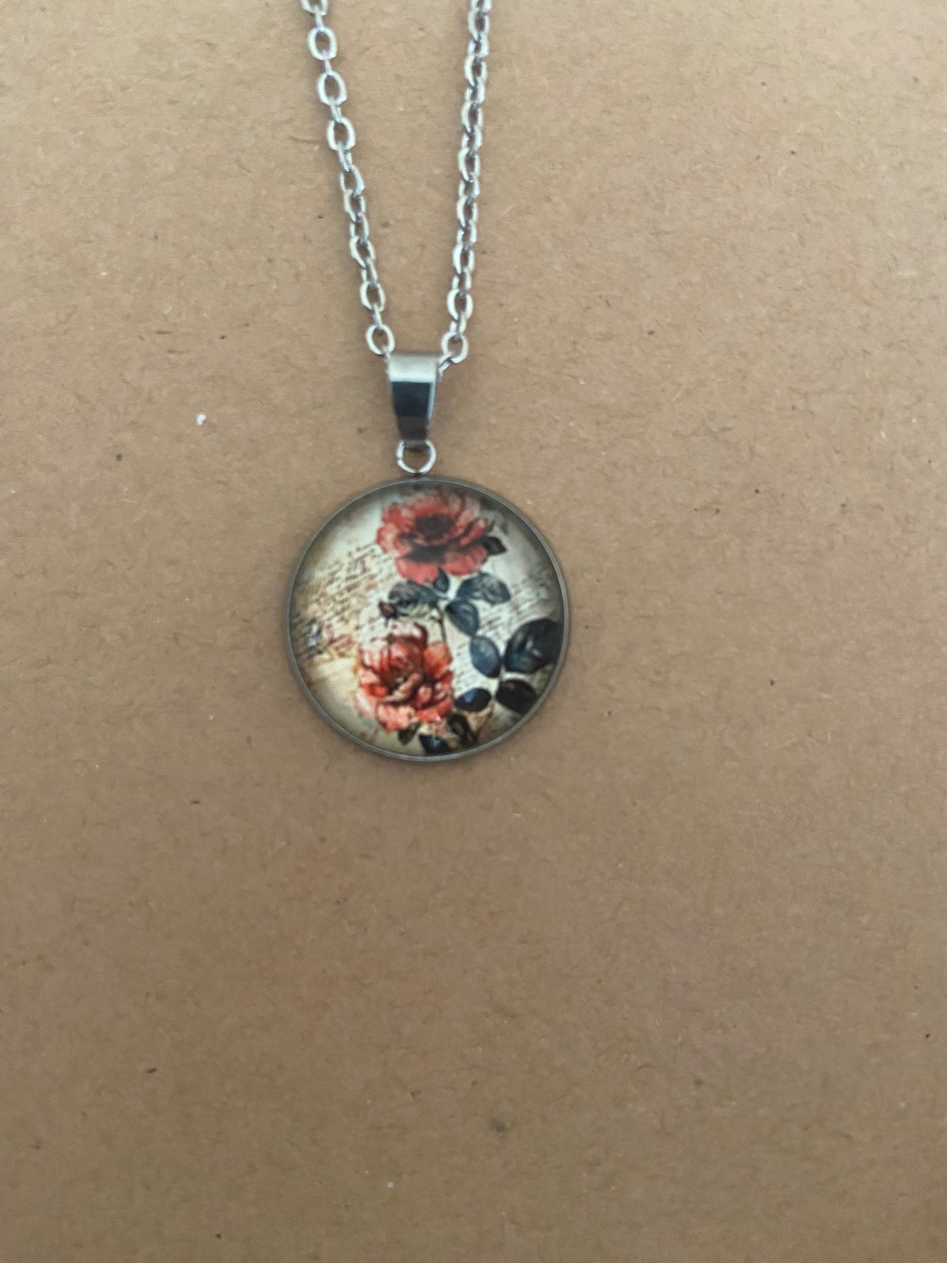 Floral 2cm Pendant Silver Necklace (45cm chain) 28 variations
