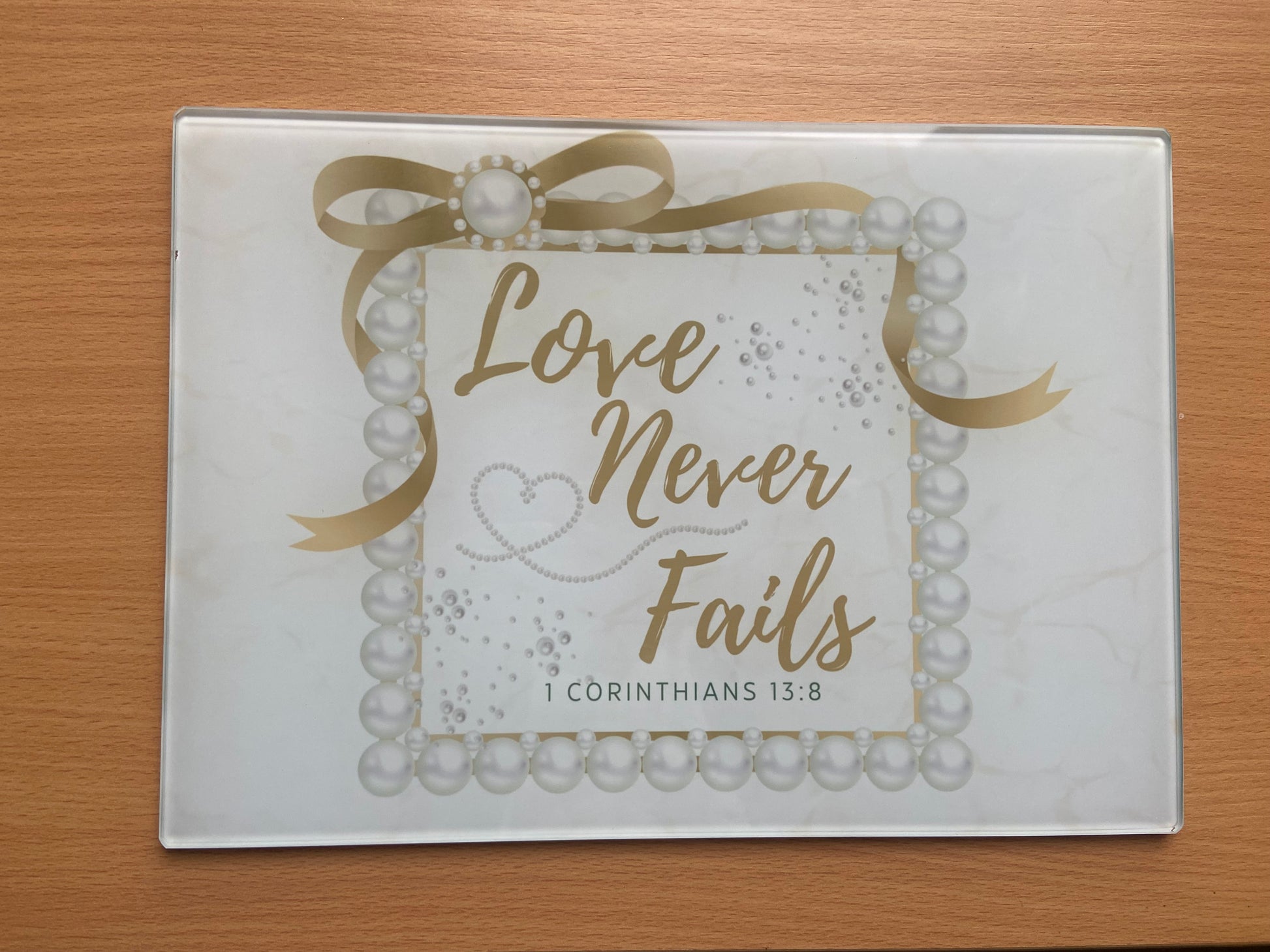 Medium Rectange Chopping Boards - 20x27.5cm Heat Resistant - Love Never Fails 1 Cor 13:8