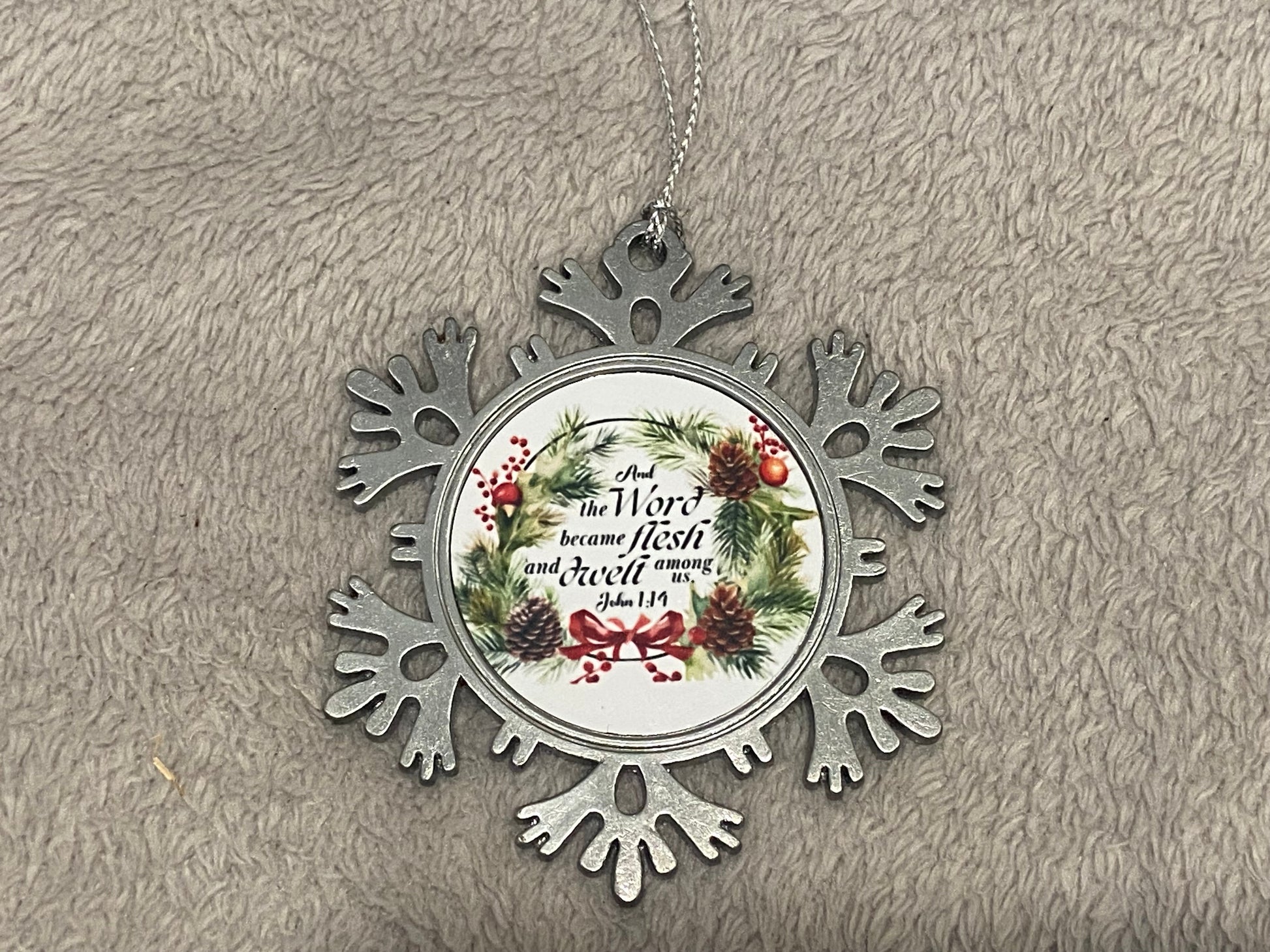 Metal Star Silver Hanging CHRISTmas decoration - And The Word Became Flesh John 1:14