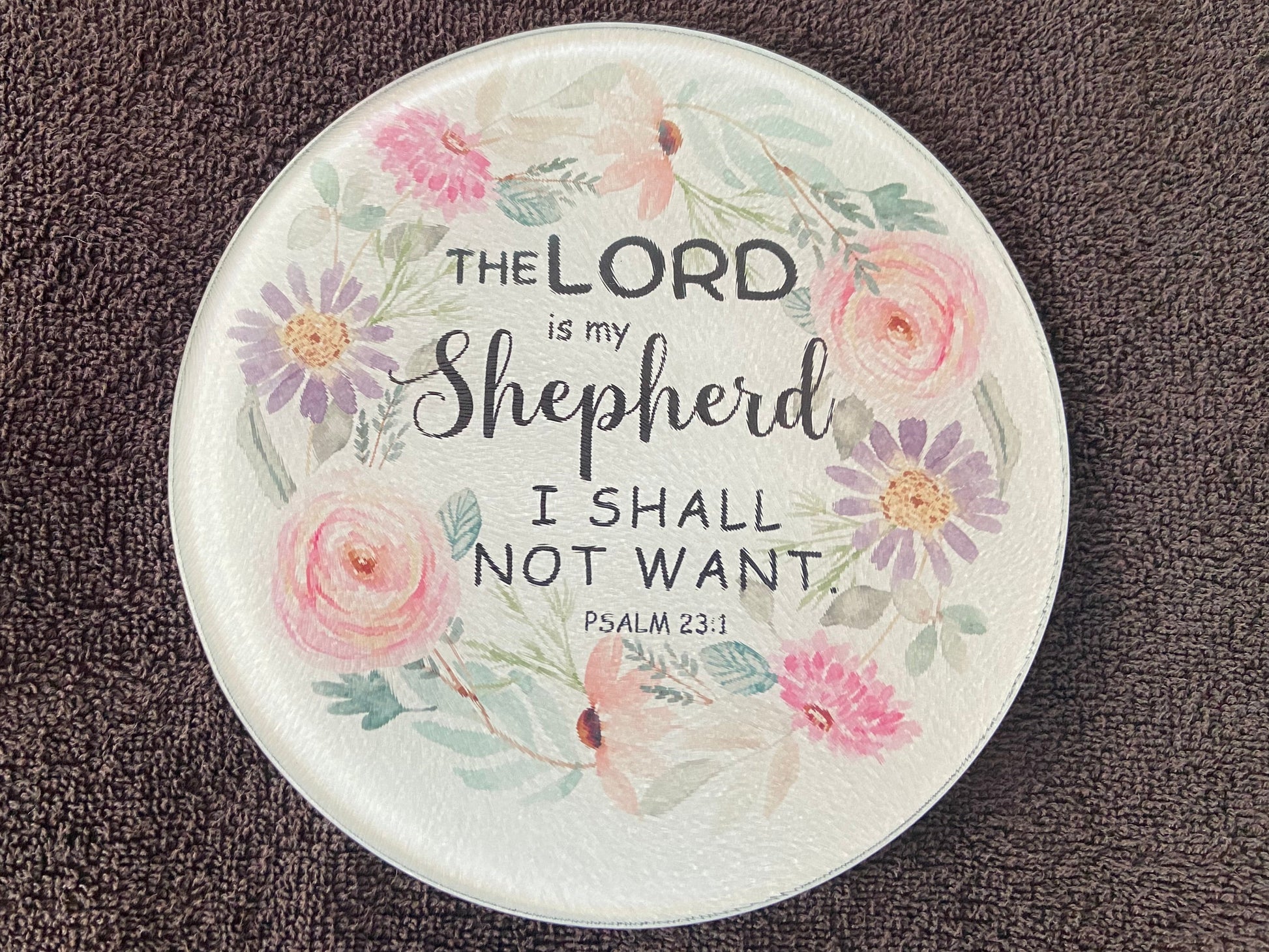 Round Glass Cutting Board - 20cm - The Lord Is My Shepherd Psalm 23:1