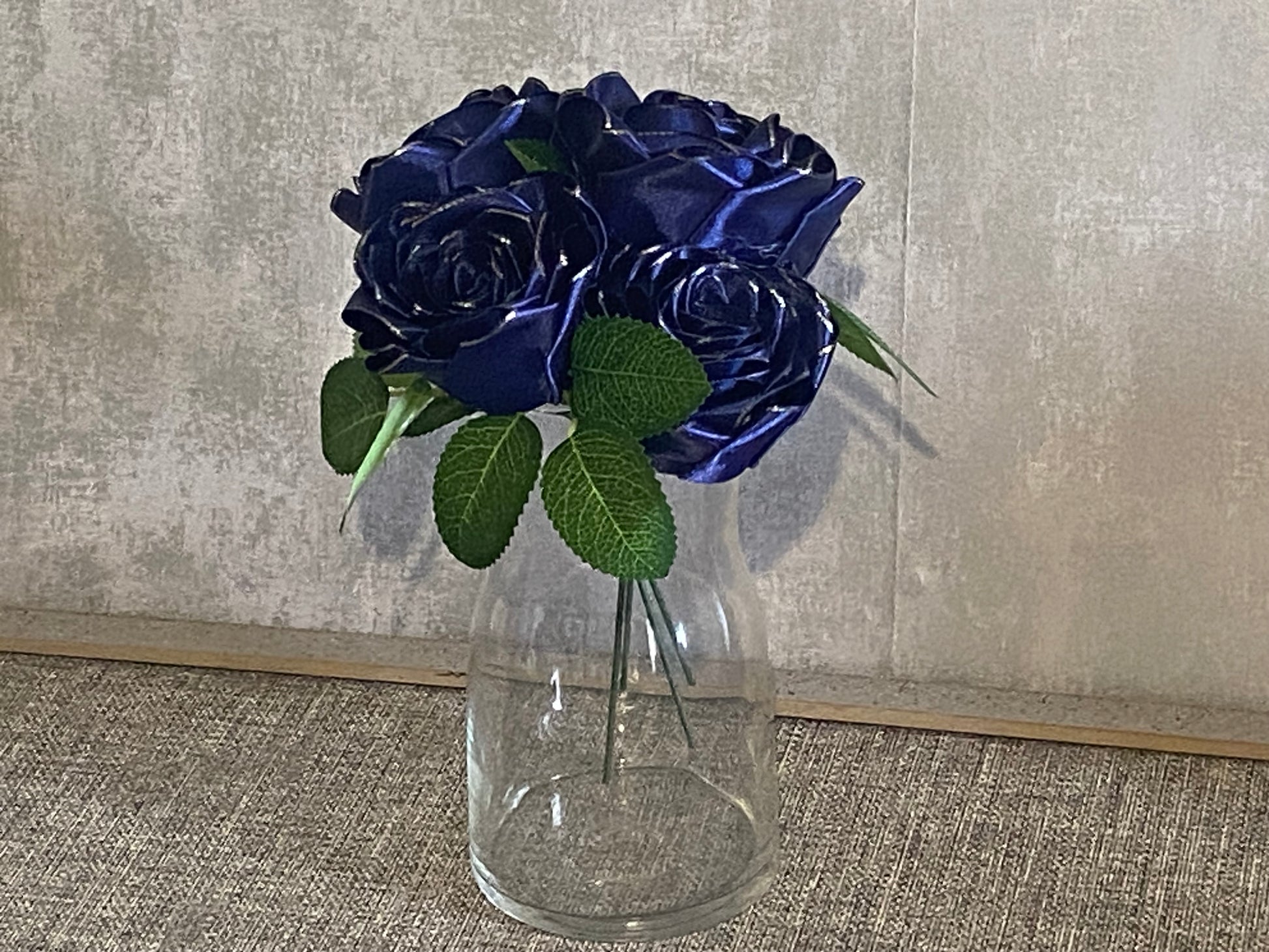 Roses made from beautiful double sided satin ribbon with gold edging.