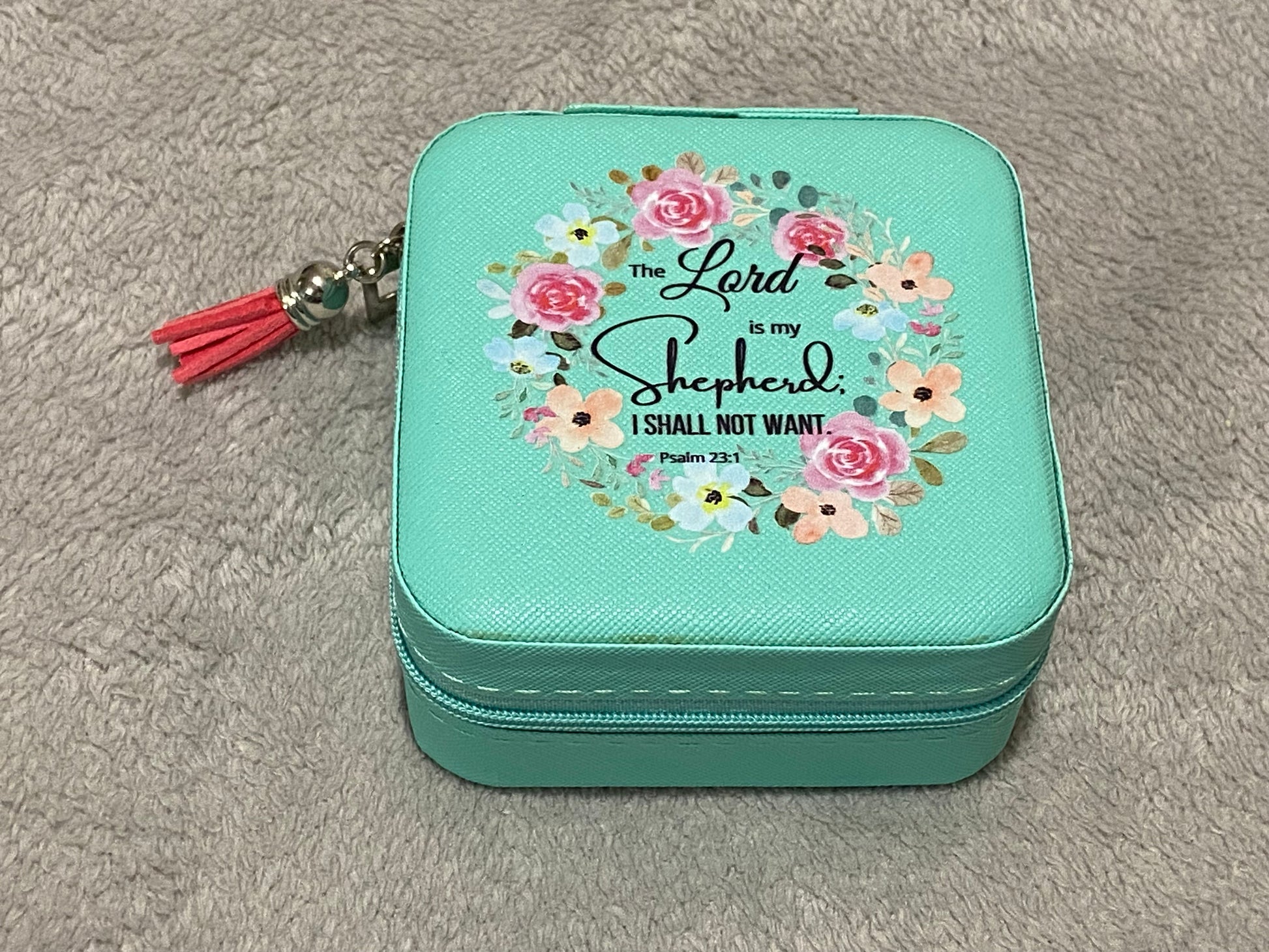 Cyan Travel Jewellery Box - The Lord Is My Shepherd Psalm 23:1
